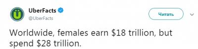 Кстати о заработке. Средняя зарплата в России 20-30 тысяч. Хватит ли этой суммы одному только мужчине? Вполне. А хватит ли ее на всю семью? Конечно нет! Если бы работали оба - то 60 тысяч вполне хватило бы на всех. Но паразитка почему-то думает, что она не обязана ходить на работу. И если мужчина ей поверил, то чтобы прокормить семью, ему нужно работать на ДВУХ работах, то есть фактически за двоих, что и служит основной причиной сверхсмертности мужчин в 50 лет от инфаркта, недосыпа и переутомления. А все почему? Потому что за все то, что раньше делала женщина своим трудом, в современном мире приходится платить добавочную стоимость. Например, если раньше женщина могла вырастить овощи или собрать травы для чая, то сегодня все это должен купить в магазине мужчина.